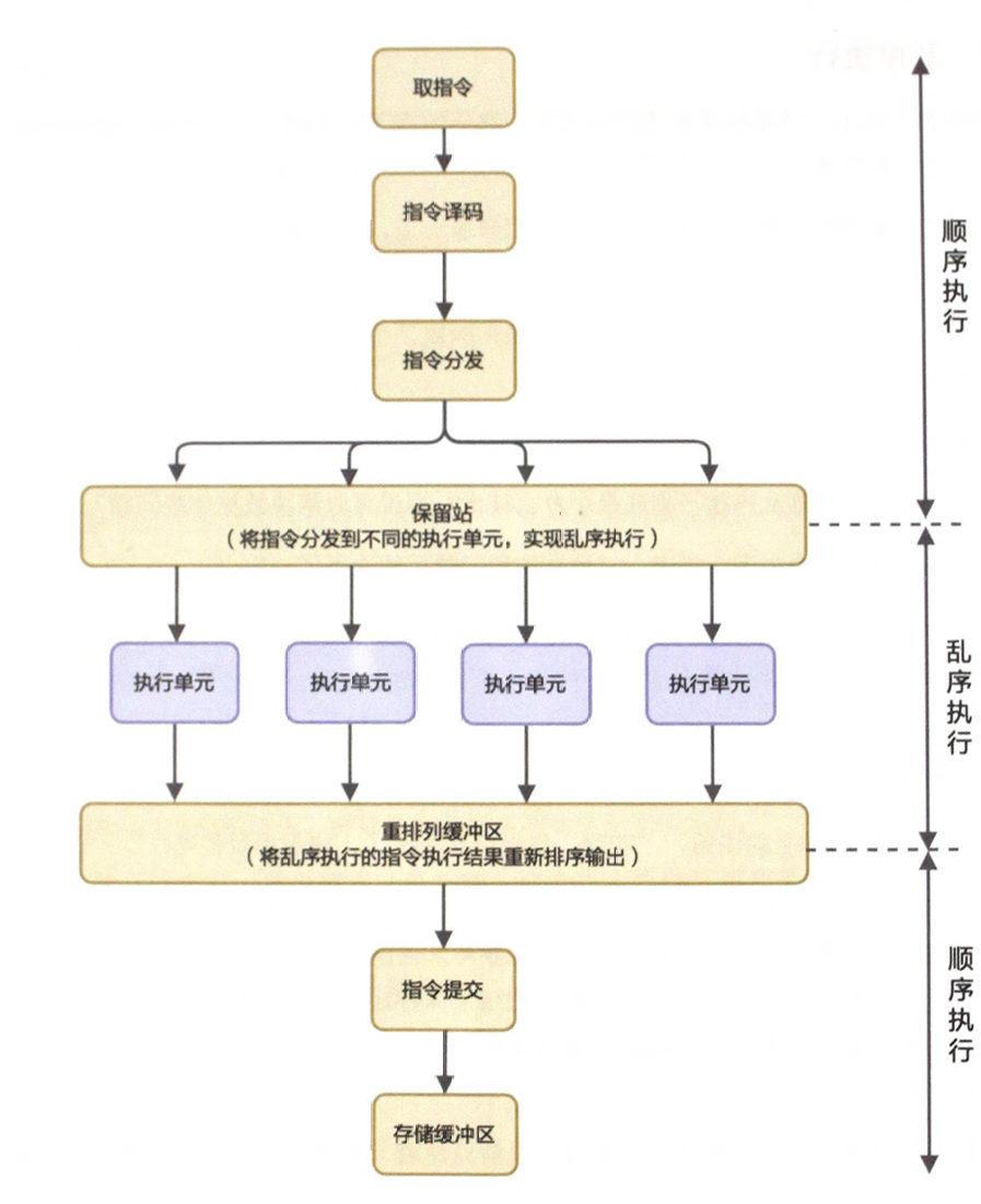 - 乱序执行 先执行不需要依赖前面数据的指令,打乱指令执行的顺序