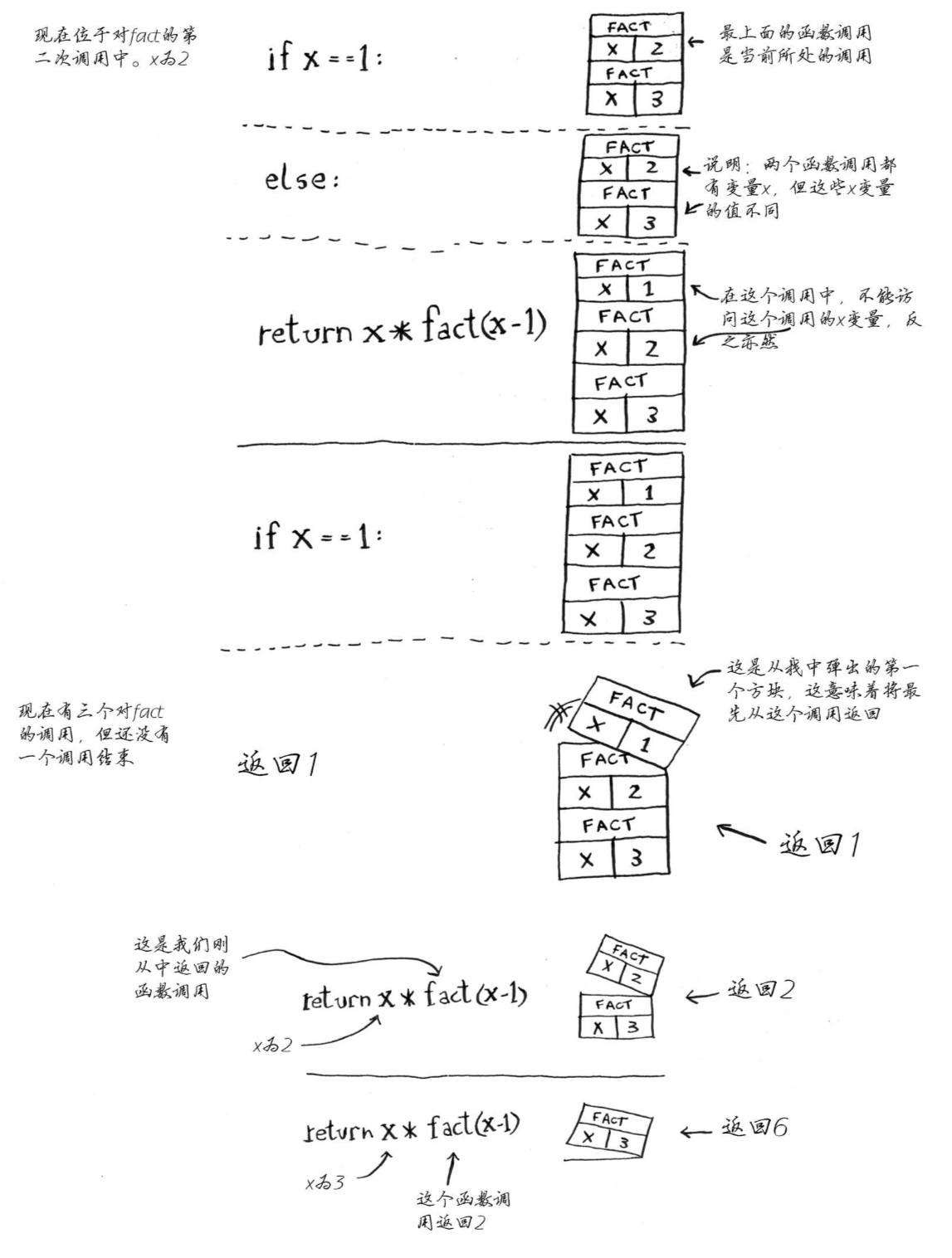 • 每个递归函数都有两个条件:基线条件和递归条件